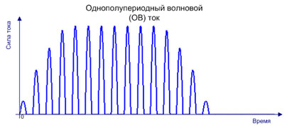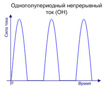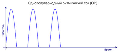 - Однополупериодный непрерывный ток (ОН) состоит из полусинусоидальных импульсов чередующихся с паузами через равные промежутки времени.