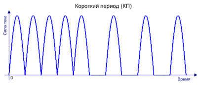 - Короткий период (КП) - чередование двухполупериодного непрерывного (ДН) и однополупериодного непрерывного (ОН) тока.